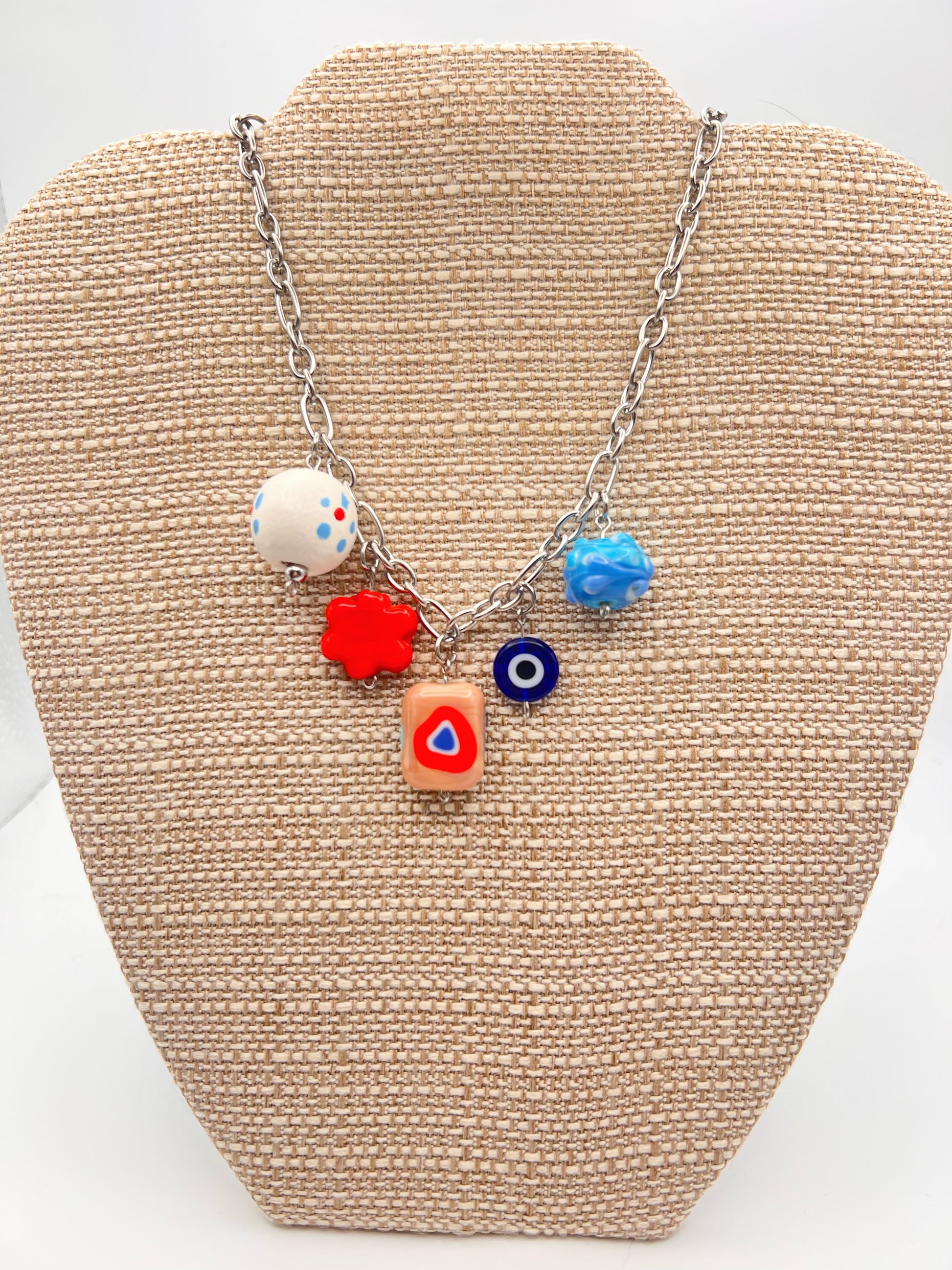 This 16" stainless steel chain with a 2'' extender features handcrafted beads sourced from Athens.