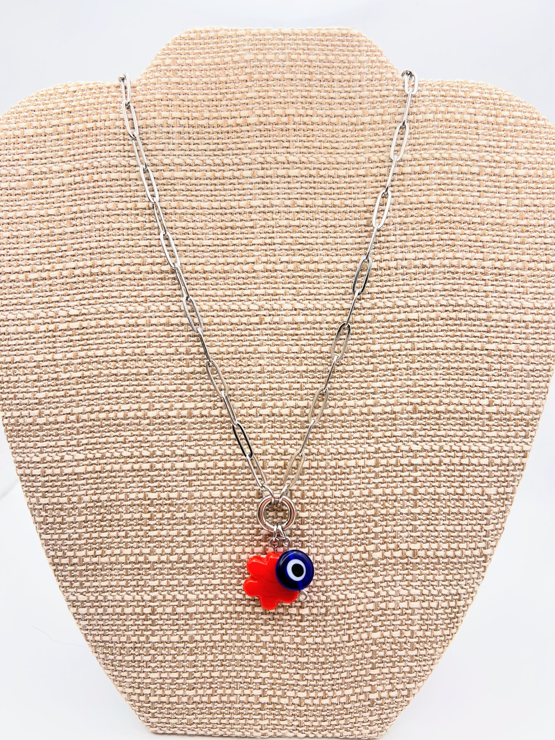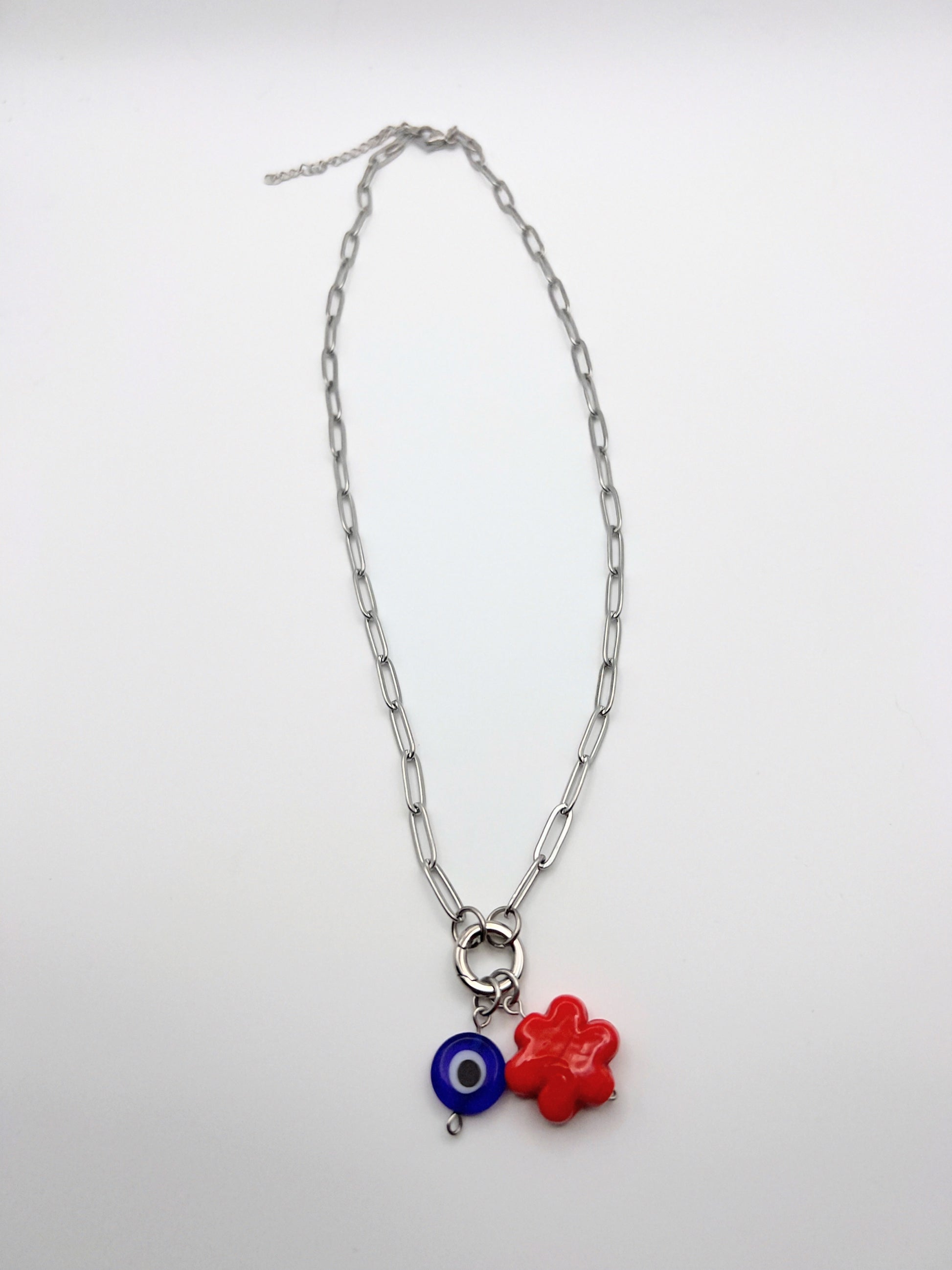 This 18" stainless steel chain with a 2'' extender features handcrafted beads sourced from Athens.